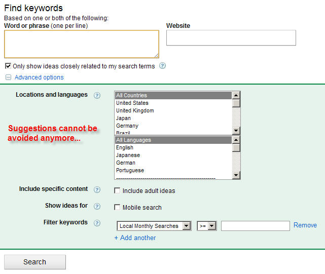 4. Why did Google take away such a valuable research tool? Marketers the world over are mourning the loss (in the Adwords Keyword tool) of the SIMPLE ability to get approximate impression counts on a batch of phrases that WE paste without the “suggestions”.